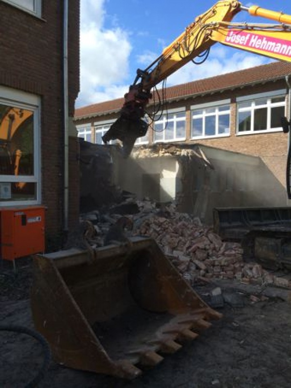 Jetzt geht´s los - Die Umbauarbeiten an der Grundschule Everswinkel haben begonnen. Heute wurden die Abbrucharbeiten begonnen. In den nächsten Tagen und Wochen wird der Anbau an Stelle der alten und abgängigen Eingangshalle und den Toiletten zur Errichtung eines neuen Eingangsbereiches, eines neuen Forums und eines neuen Musikraumes erstellt werden.